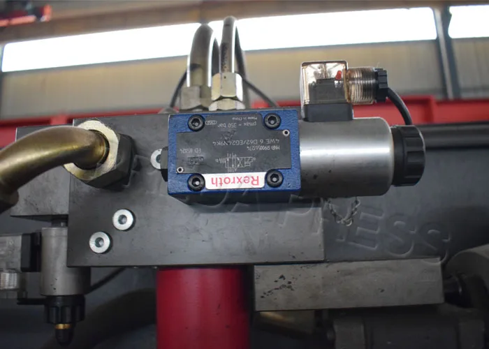 Germany Bosch-Rexroth Hydraulic valves No. | Model | WC67K 63T/2500 | WC67K 63T/3200 | 1 | Pressure (KN) | 630 | 630 | 2 | Length of table (mm) | 2500 | 3200 | 3 | Distance between columns (mm) | 2050 | 2510 | 4 | Throat depth (mm) | 250 | 250 | 5 | Stroke (mm) | 120 | 120 | 6 | Open height (mm) | 340 | 340 | 7 | Main power (kw) | 5.5 | 5.5 | 8 | Weight (kg) | 3800 | 4600 | 9 | Size (mm) | 2500*1600*2200 | 3200*1600*2200 |